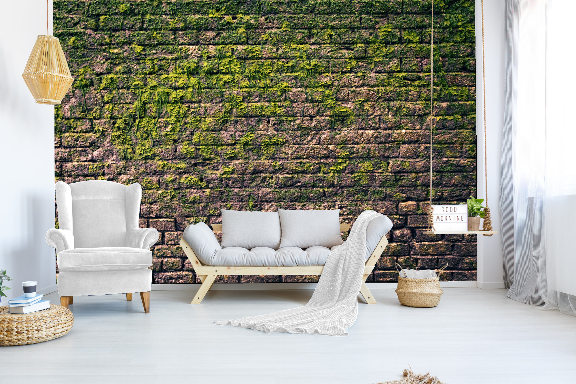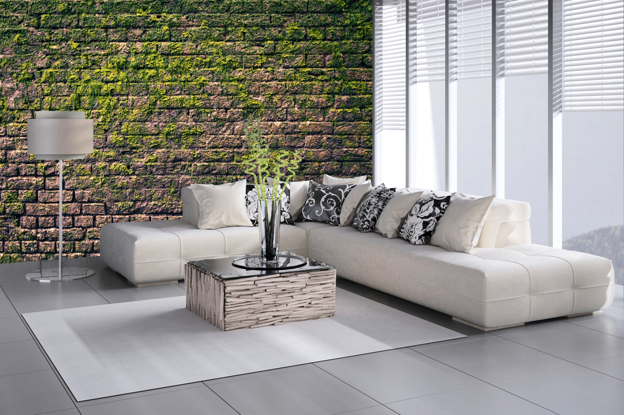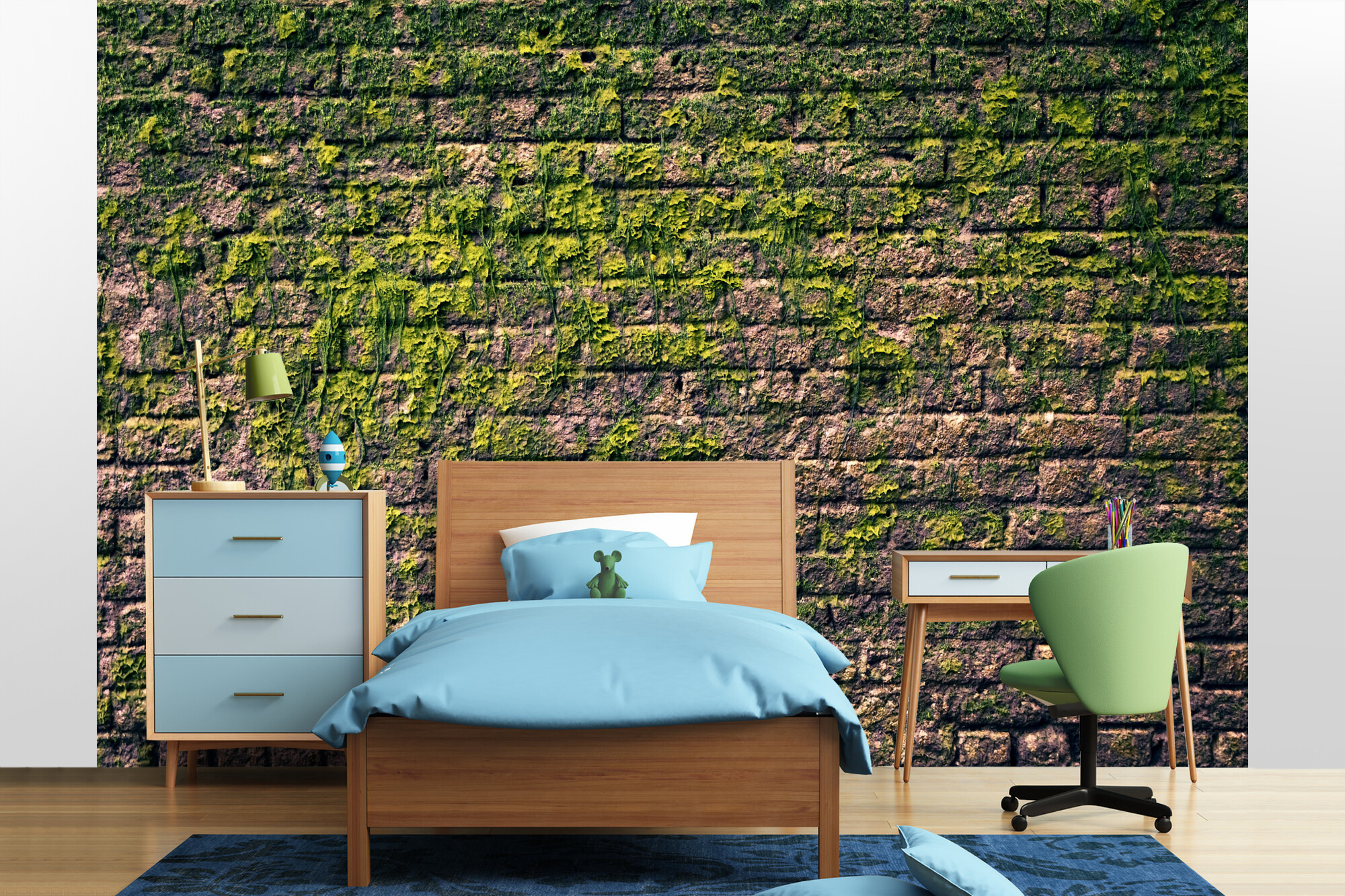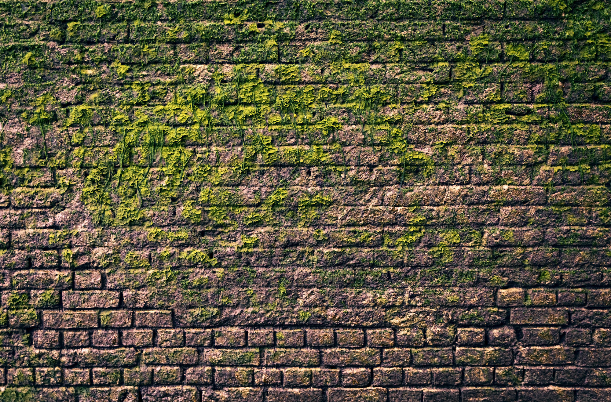 Cihlová zeď s mechem