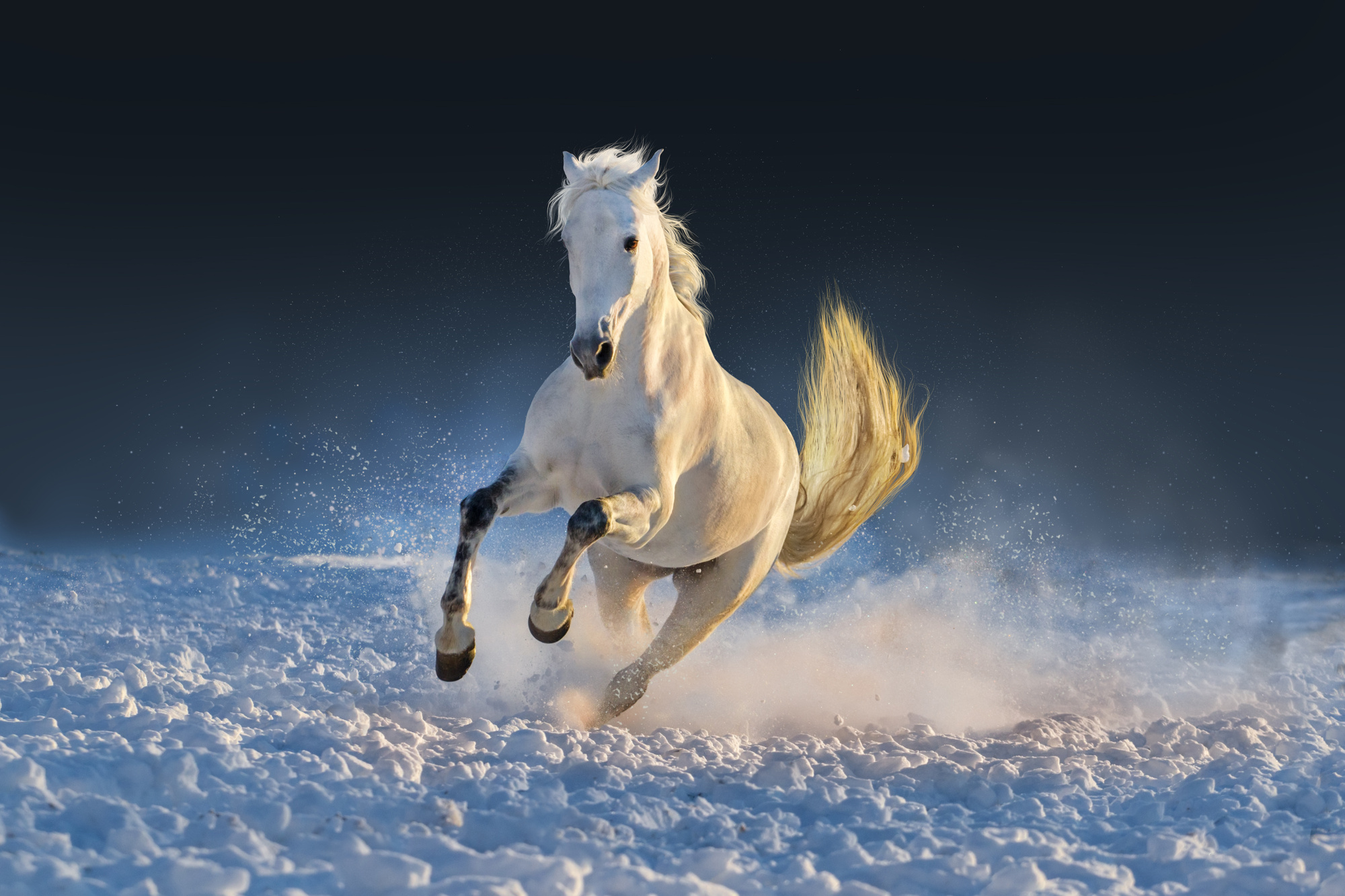 Kůň běžící sněhem