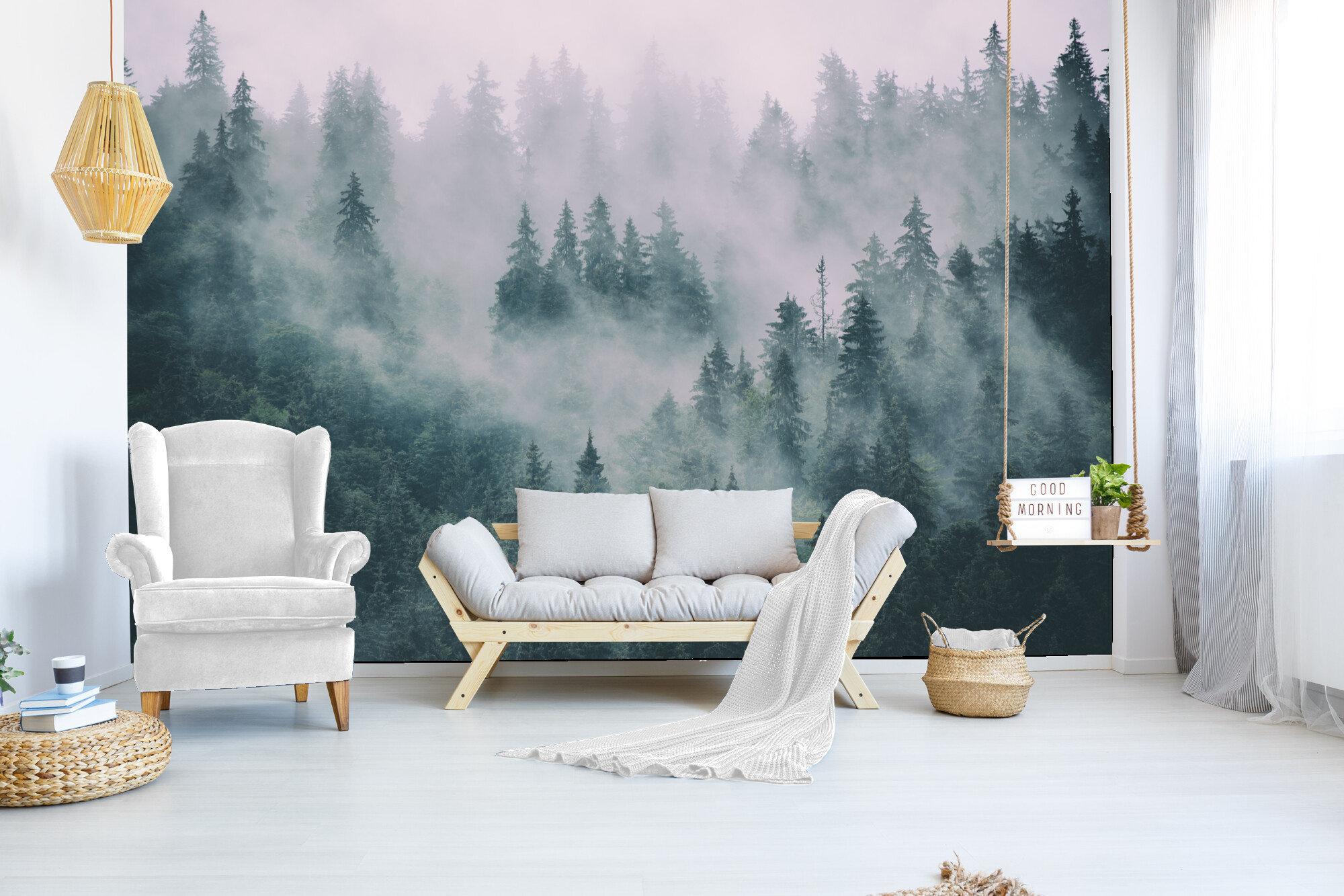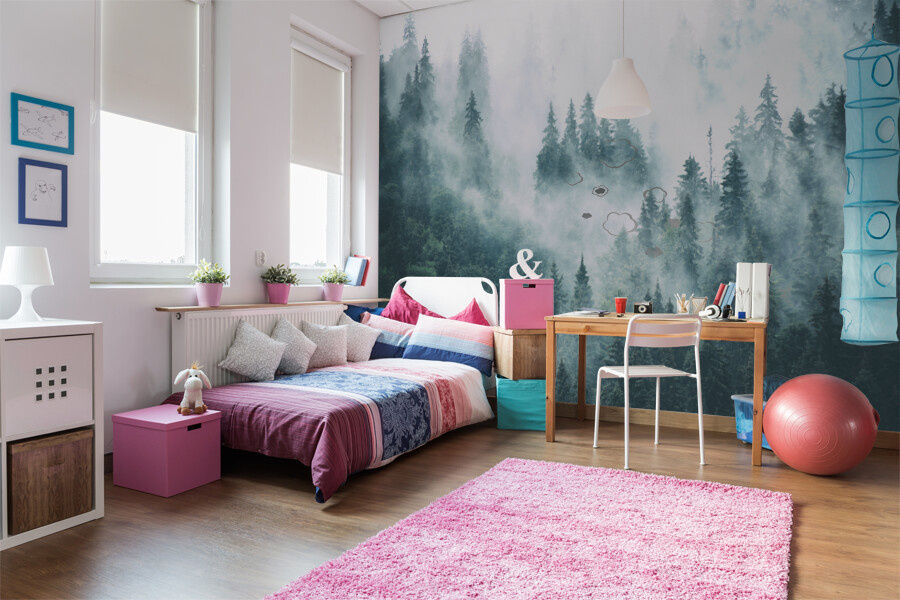 Fototapeta Les v mlze