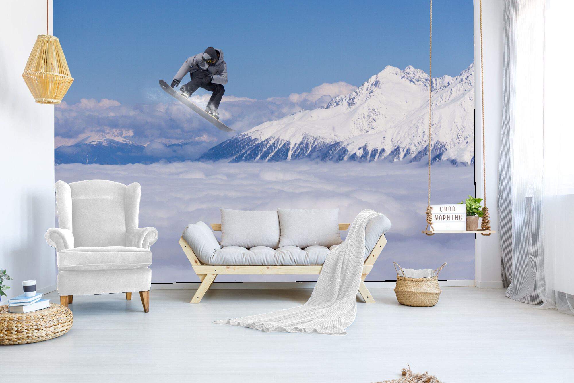 Létící snowboardista