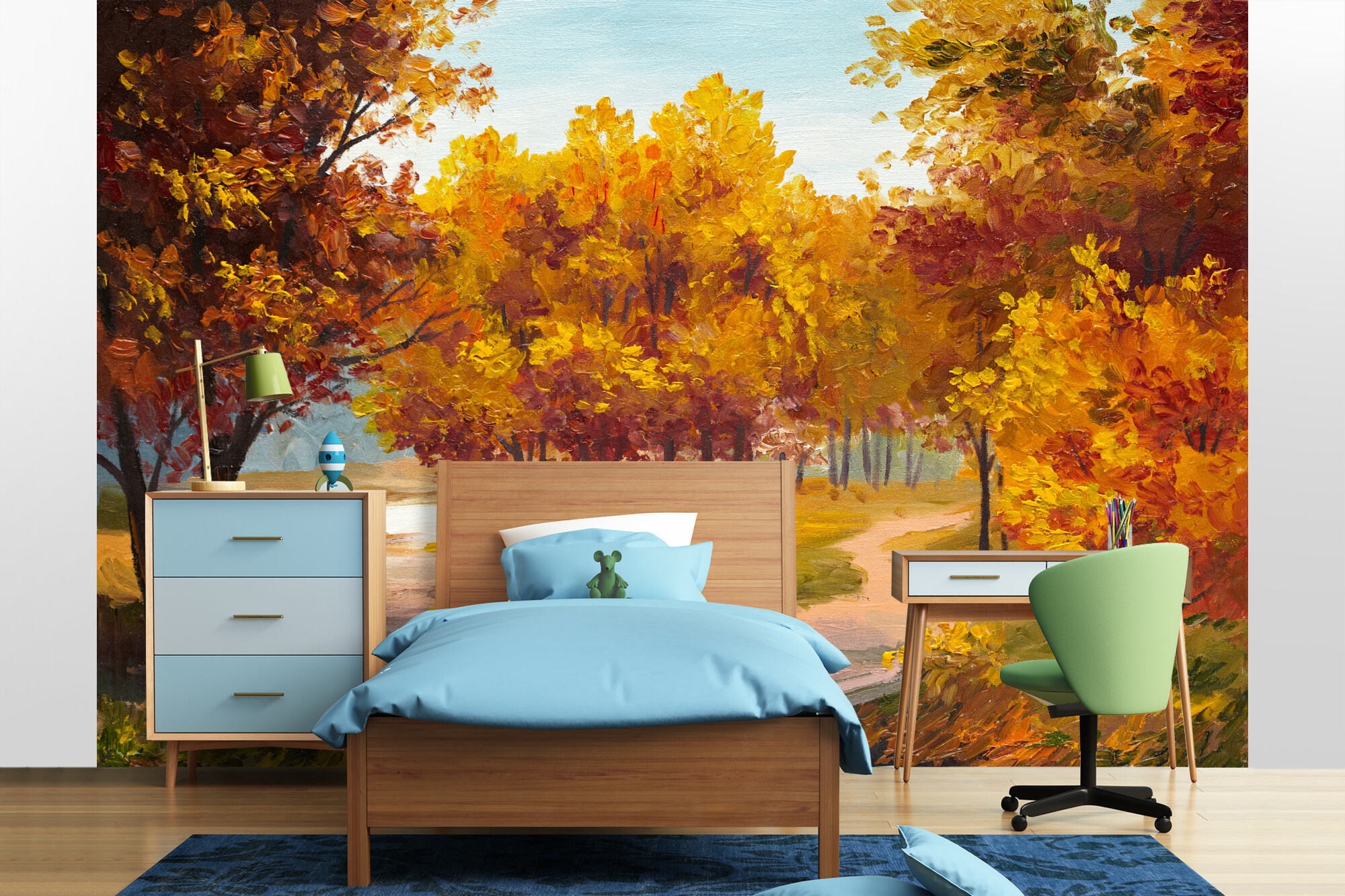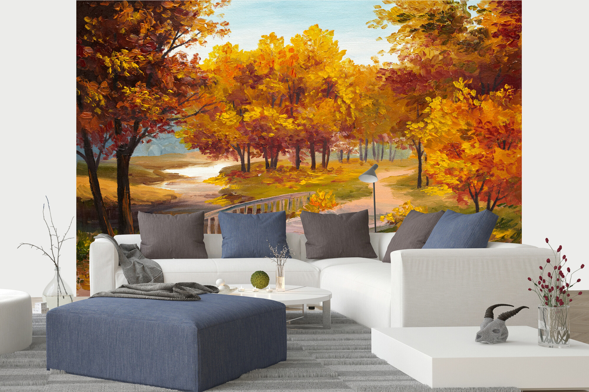 Fototapeta Malba - Podzimní les s řekou