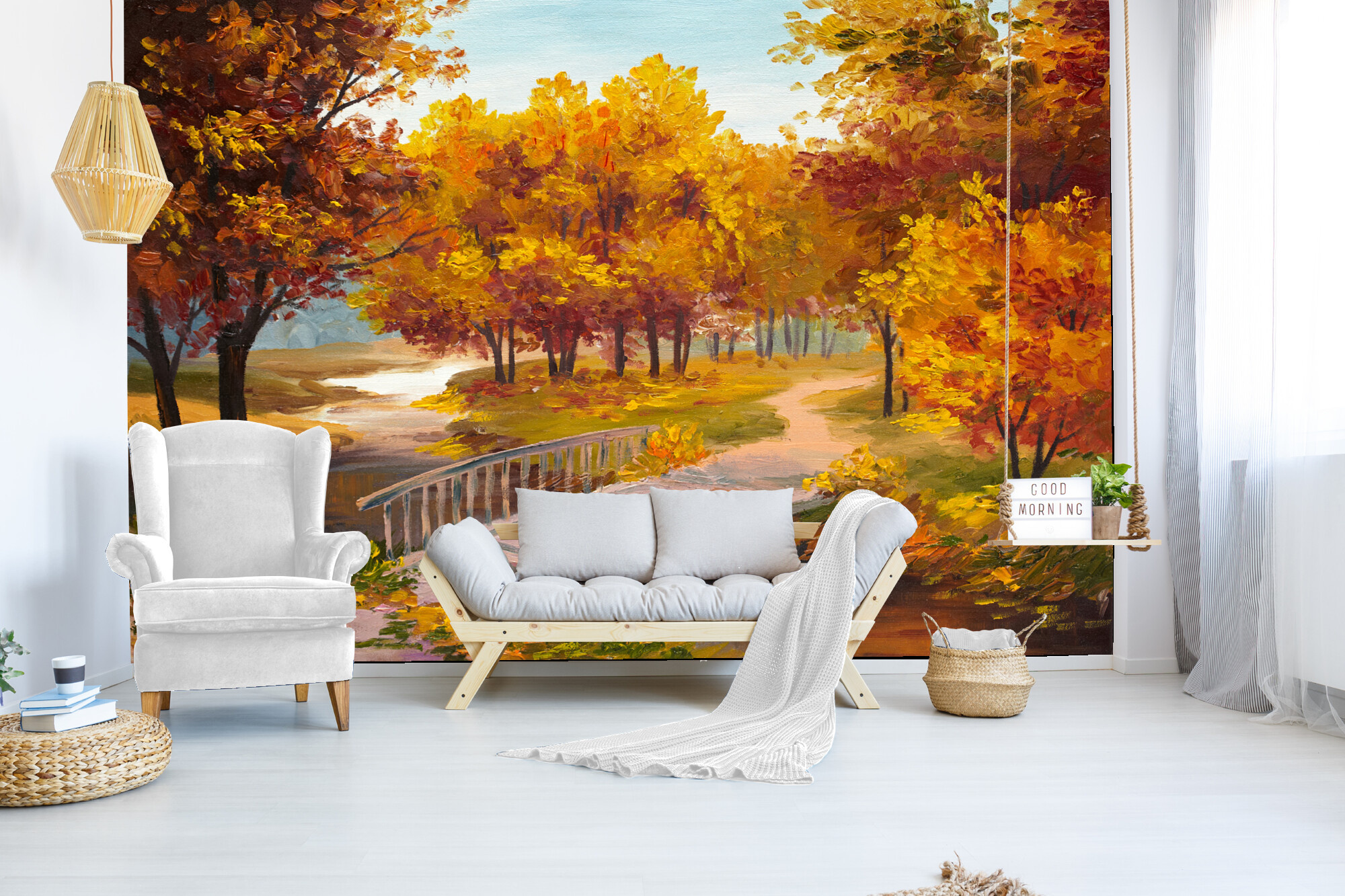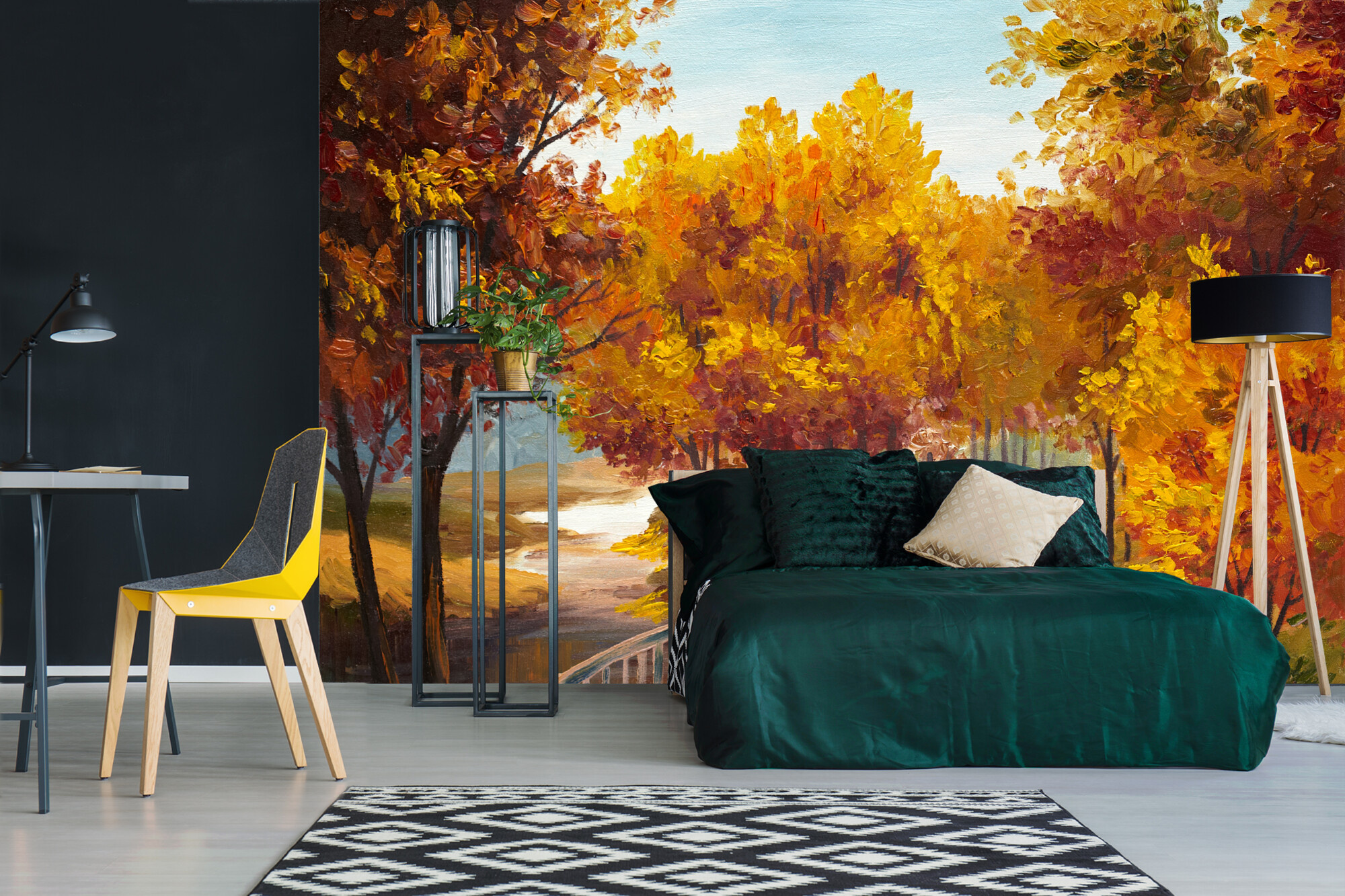 Malba - Podzimní les s řekou
