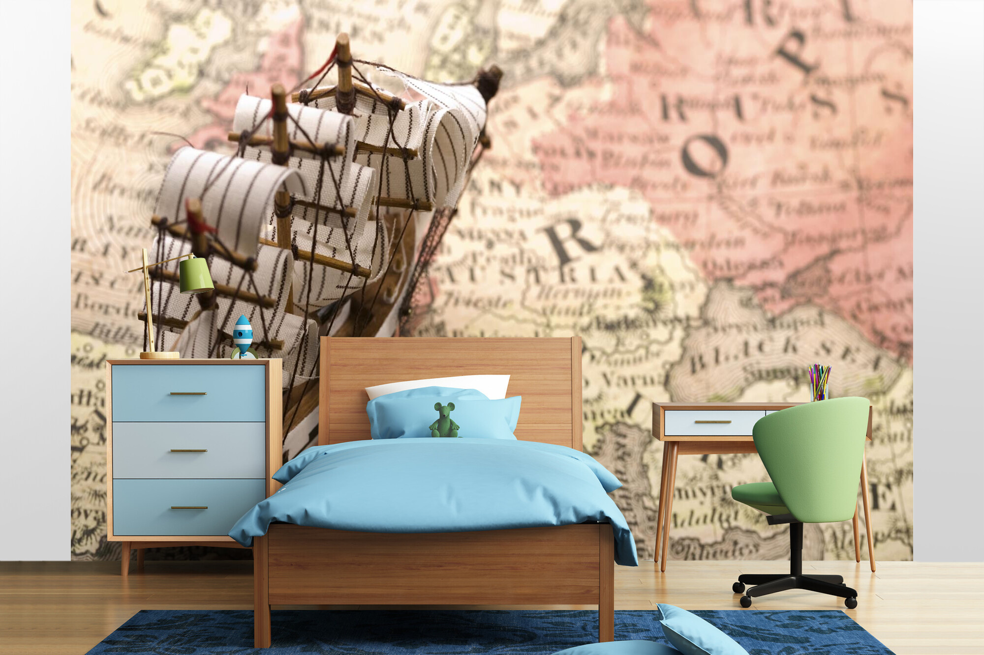 Fototapeta Model lodi na mapě