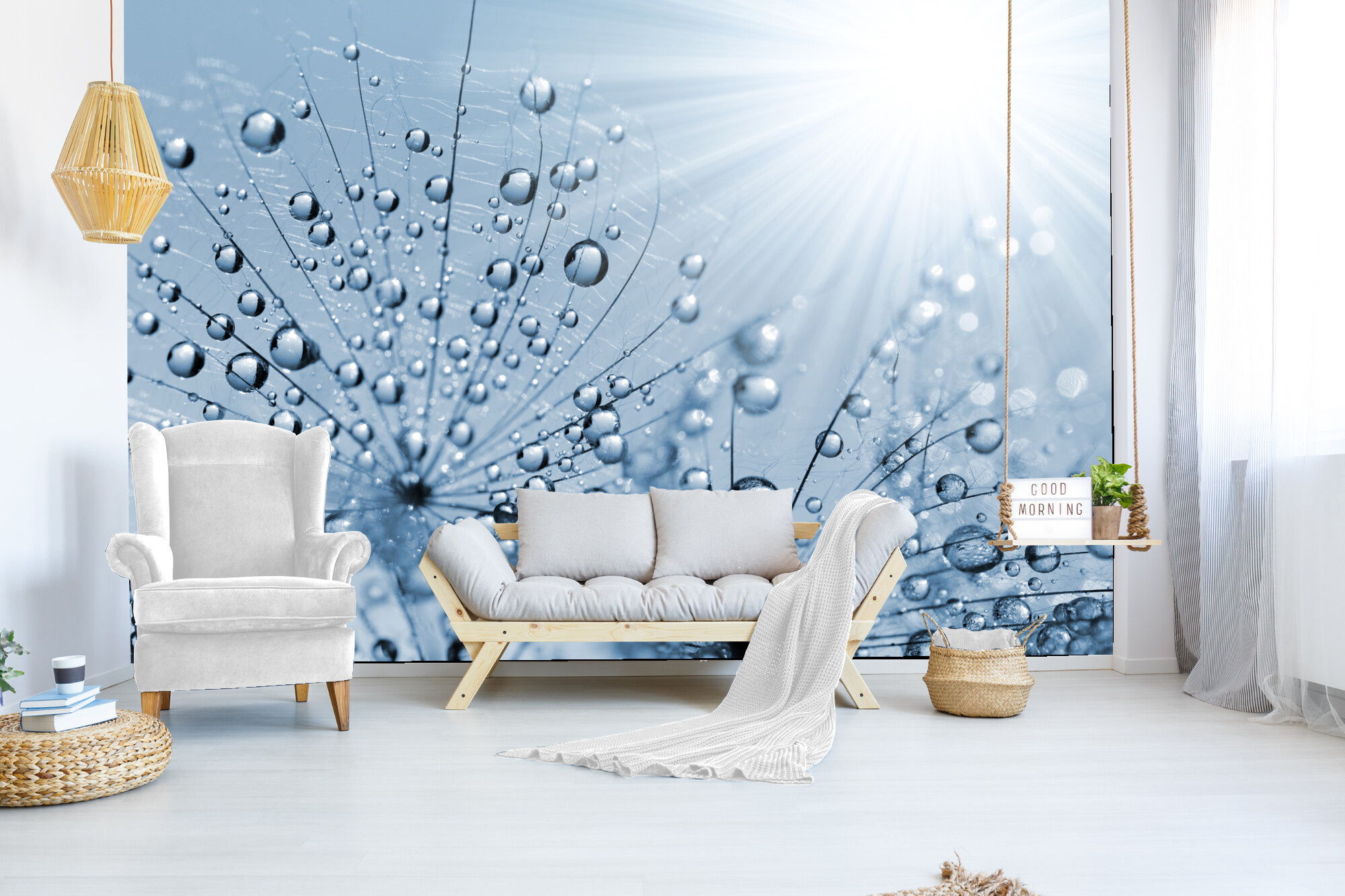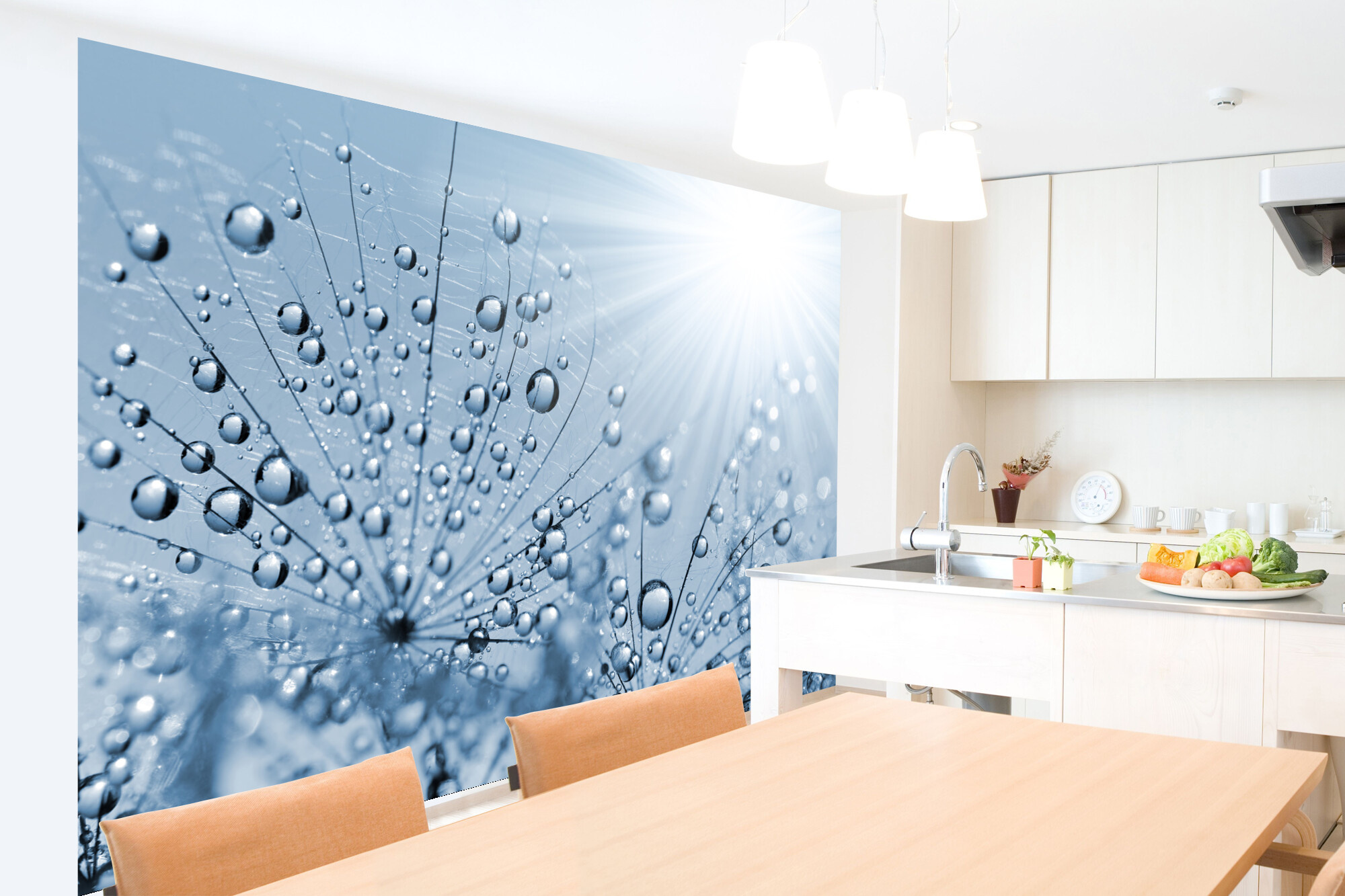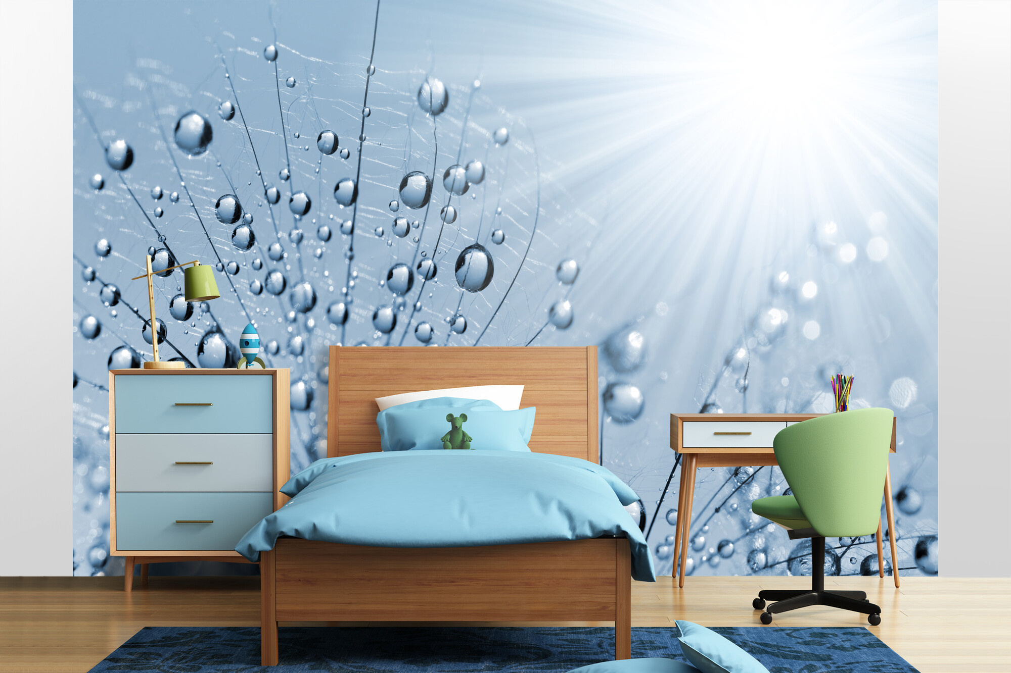 Fototapeta Modrá orosená pampeliška