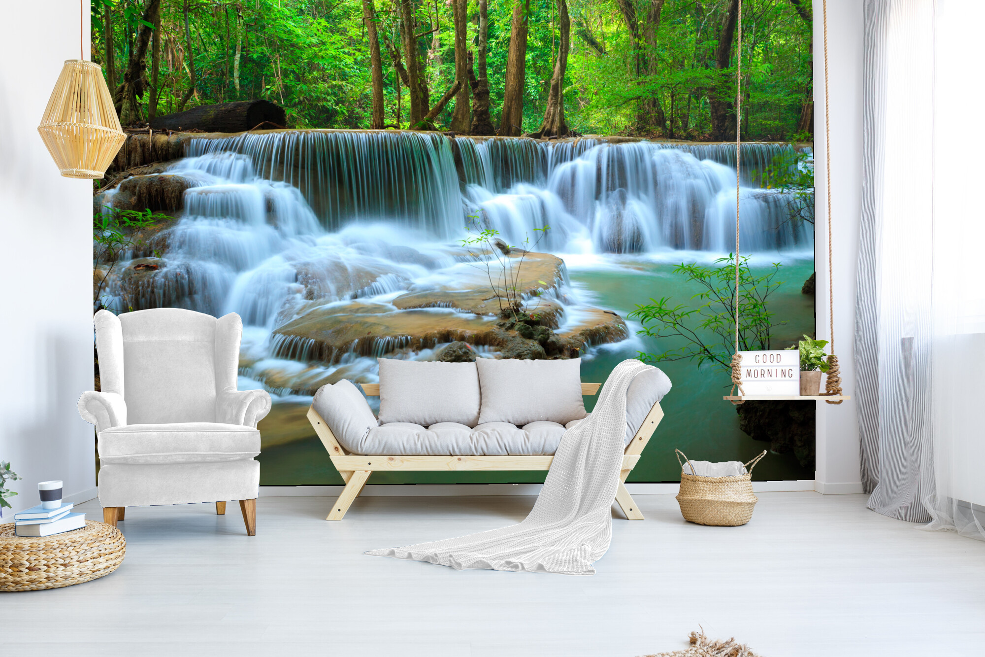 Mohutný vodopád v lese