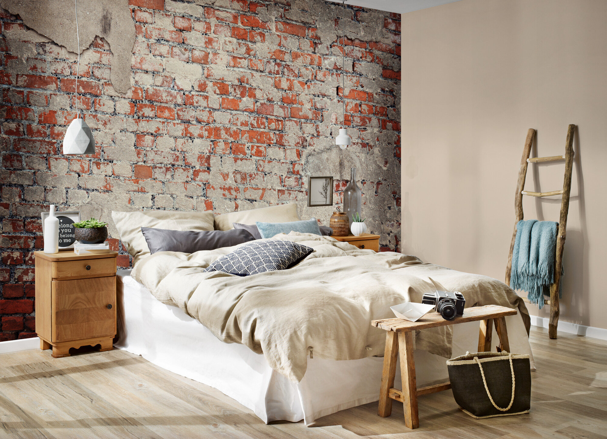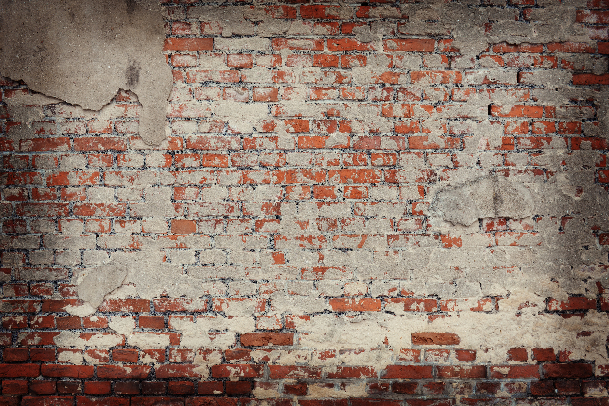 Oprýskaná cihlová zeď