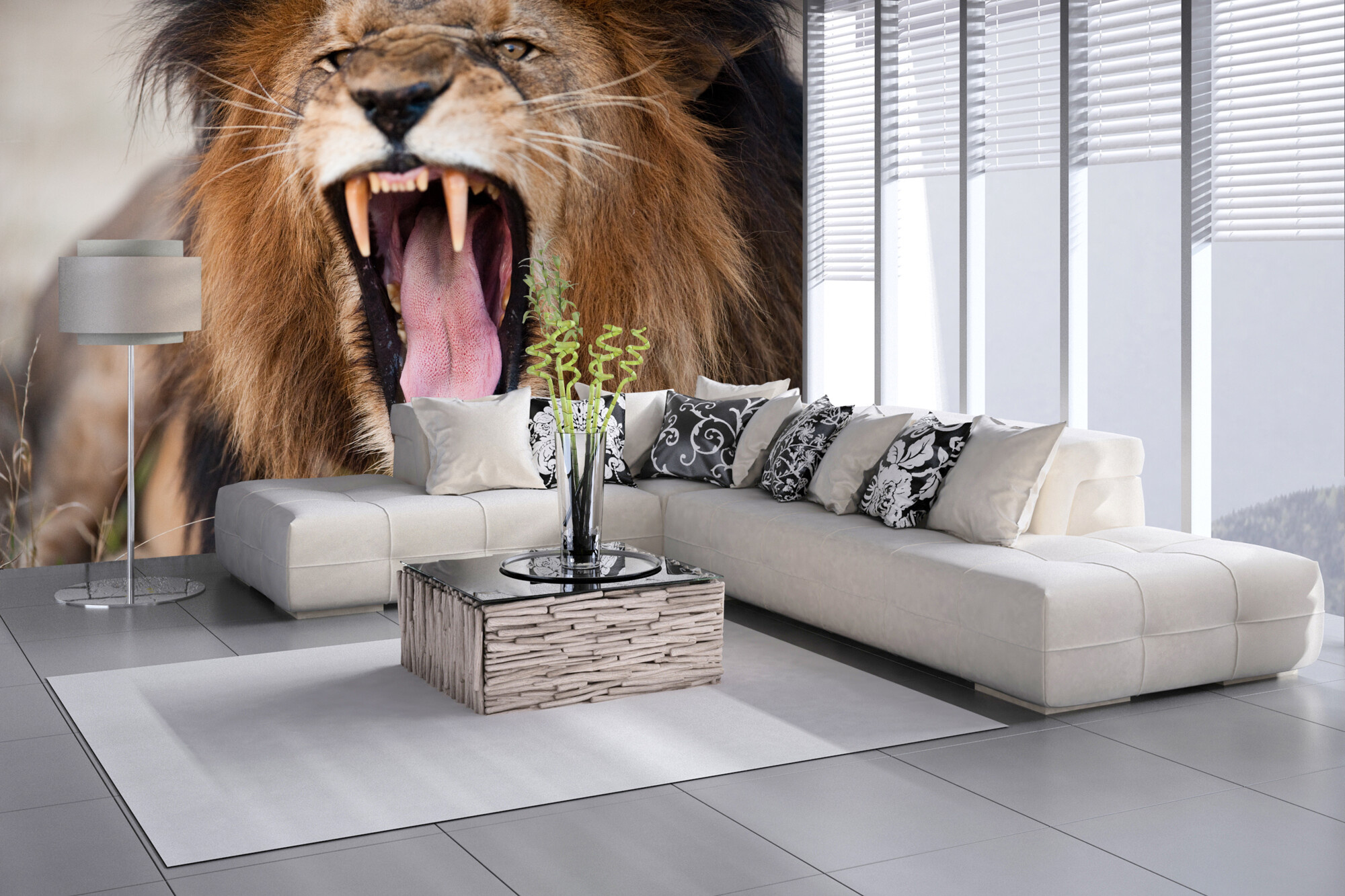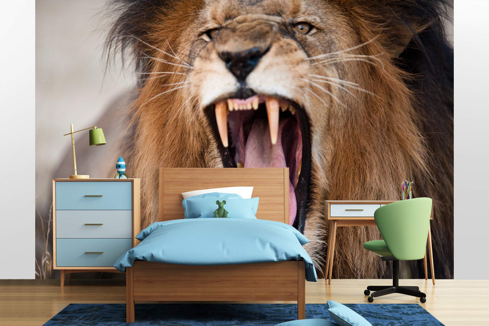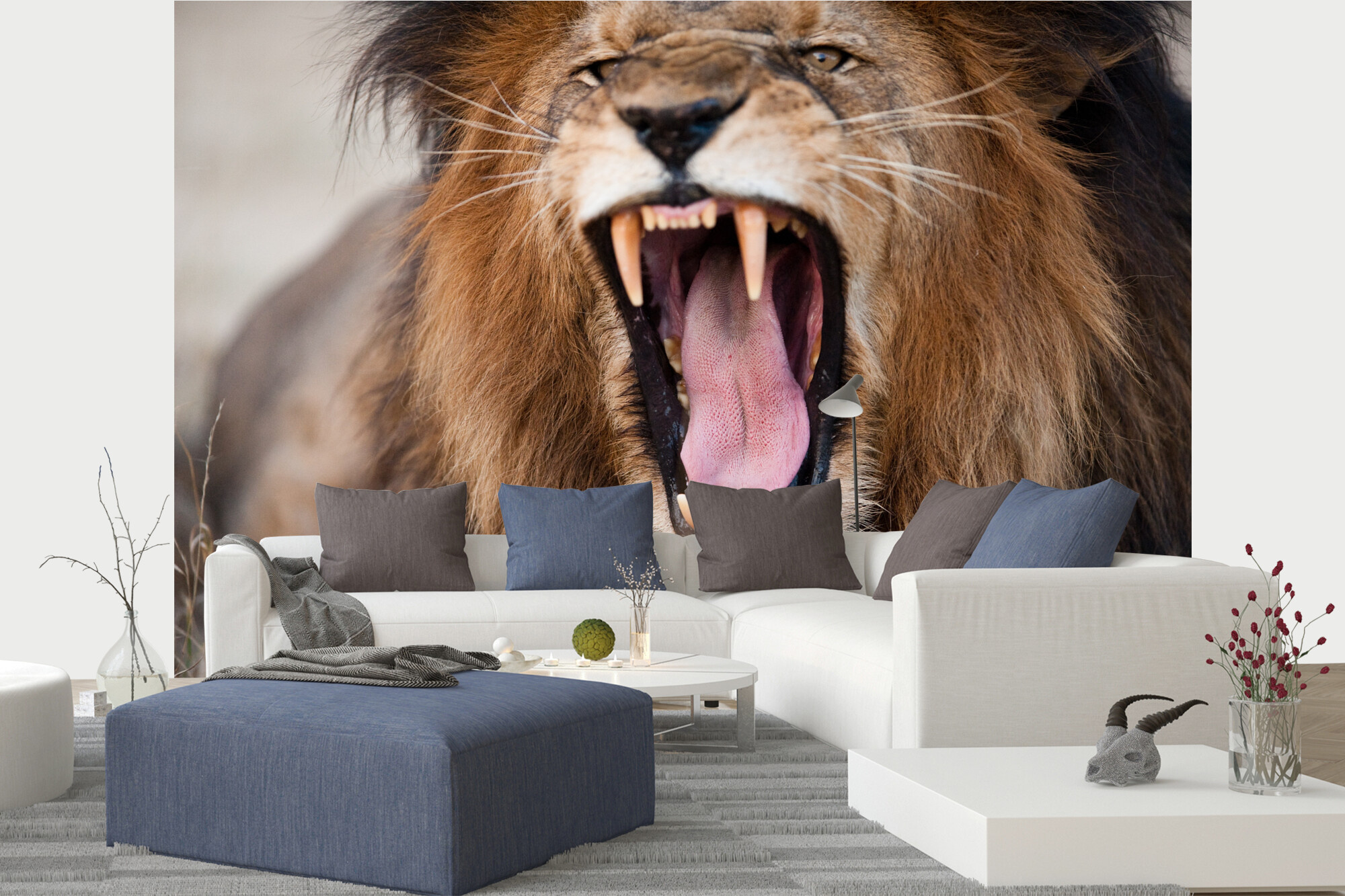 Rozzlobený řvoucí lev
