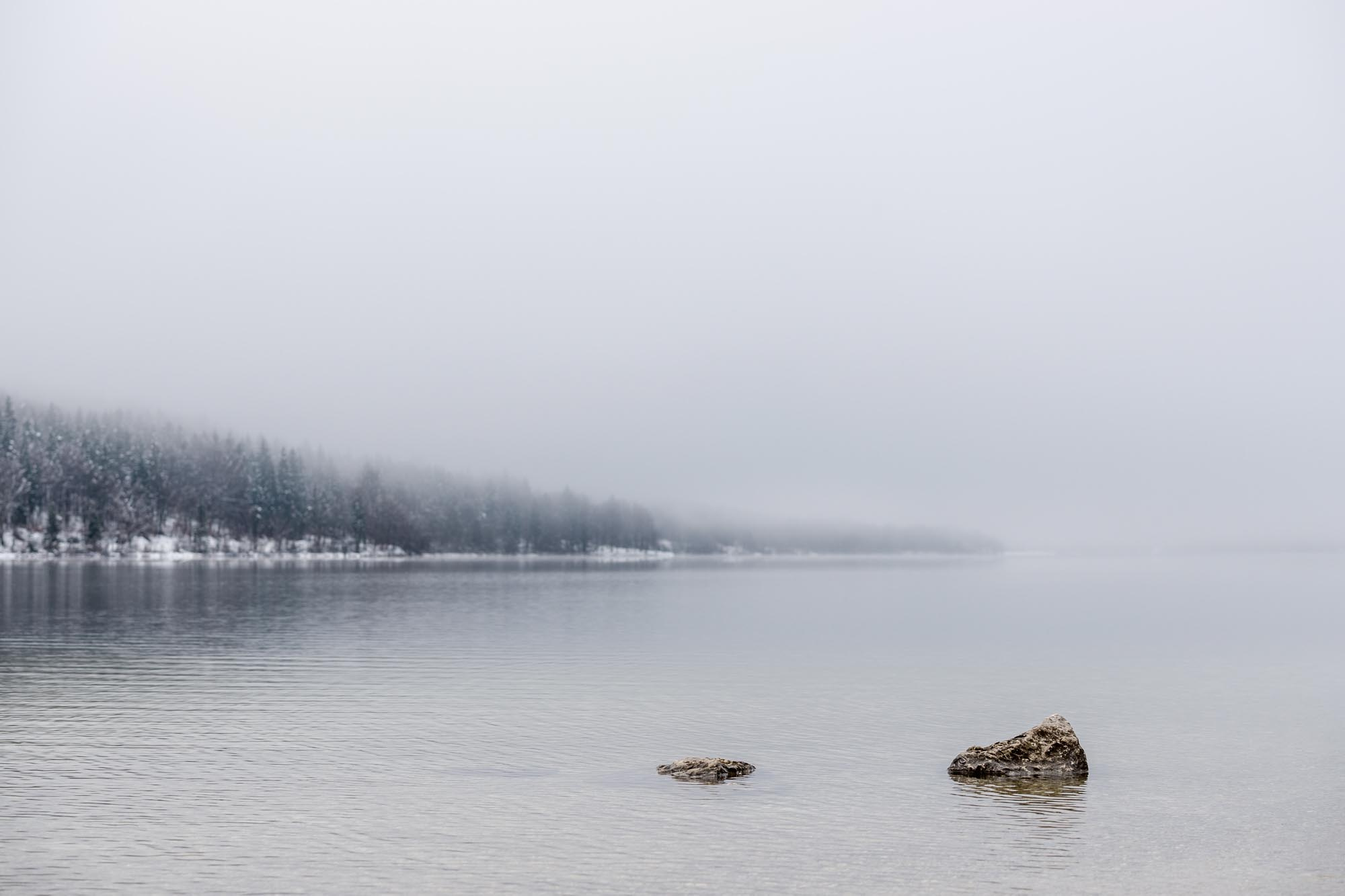 Skály a mlhavý den