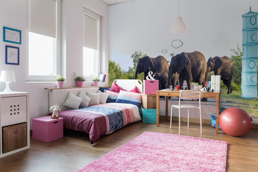 Fototapeta Sloni přecházející silnici