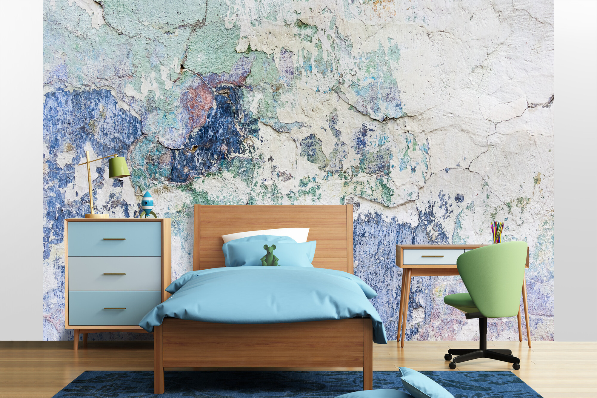 Fototapeta Špinavá modrá zeď