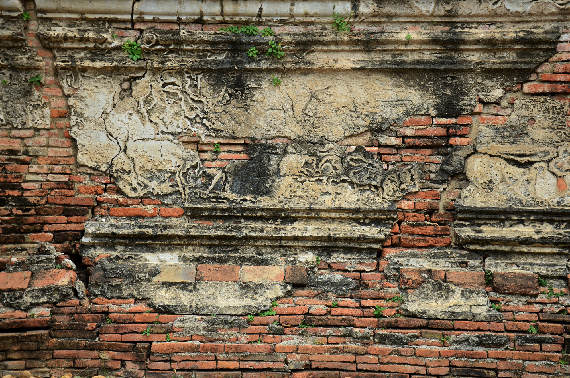 Stará oprýskaná cihlová zeď