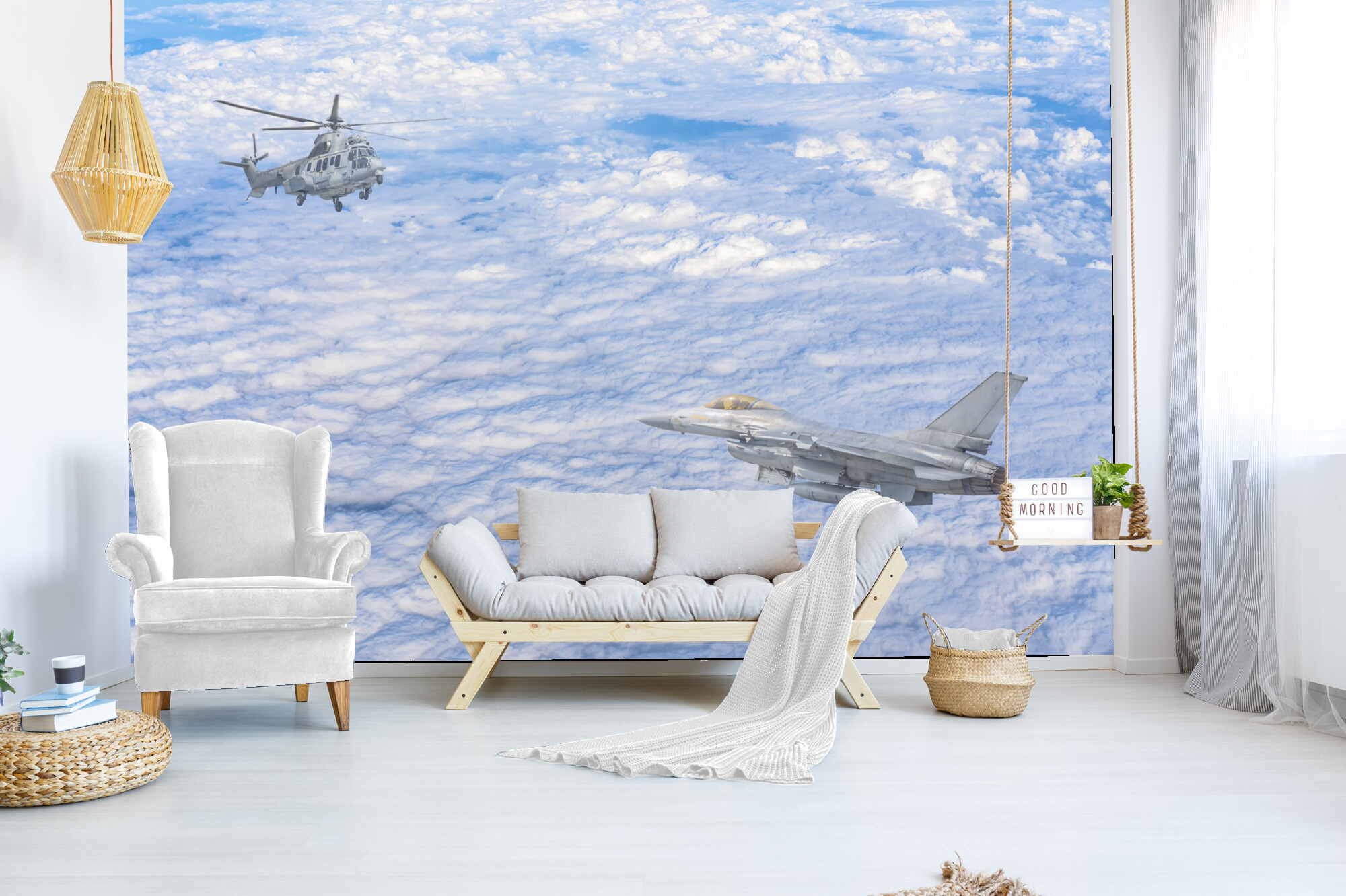 Fototapeta Stíhací letoun a vrtulník