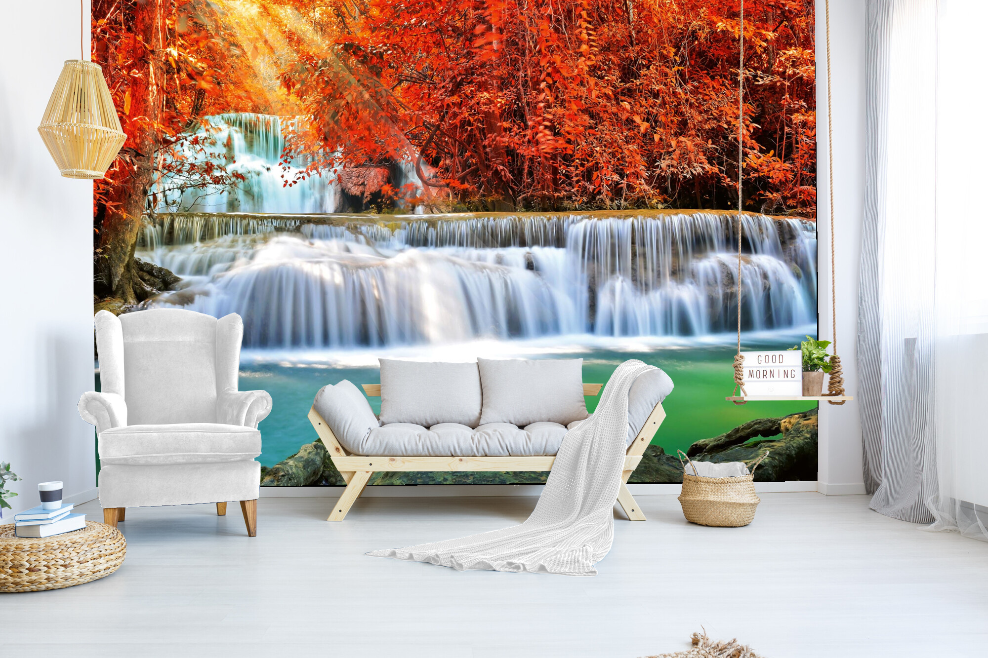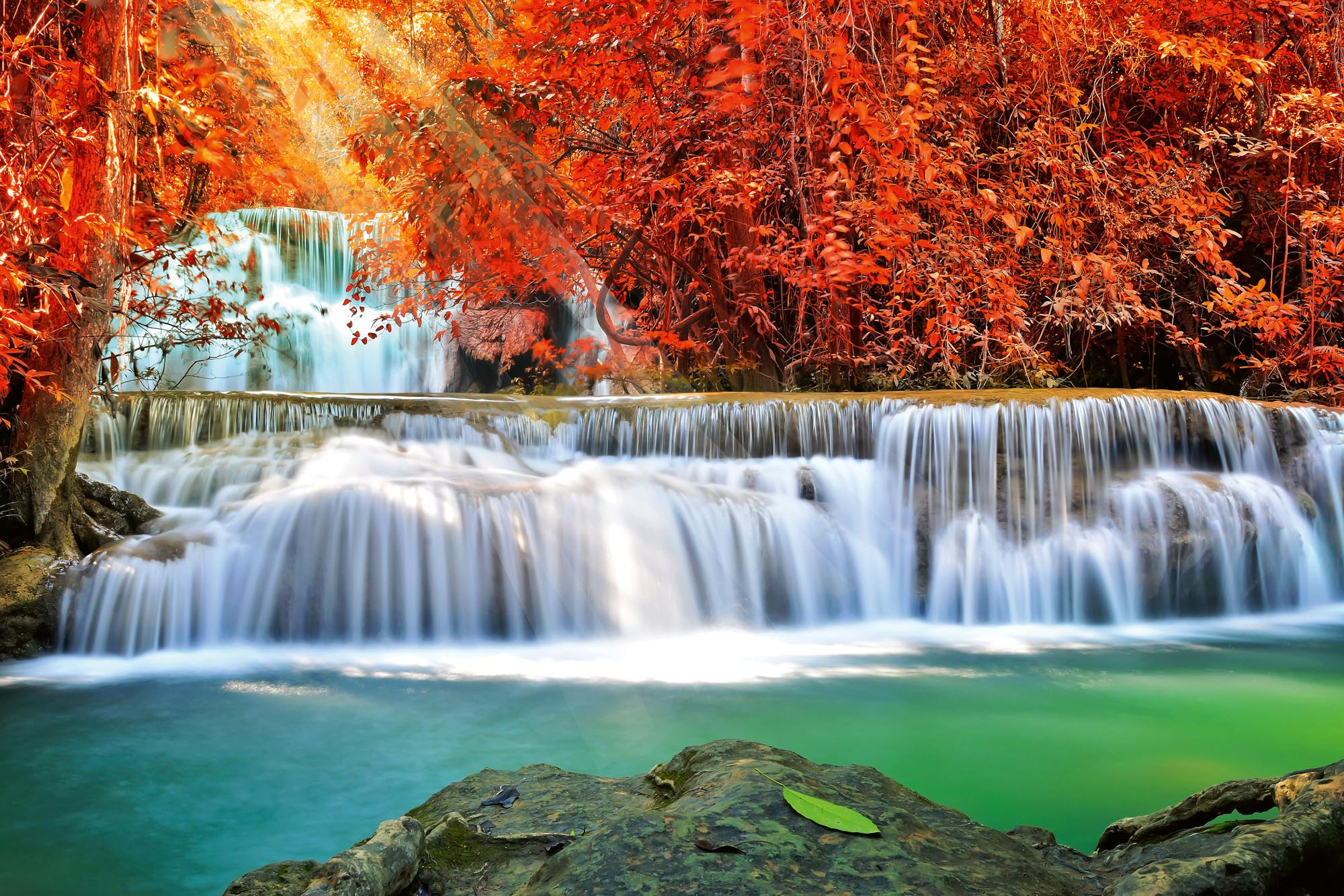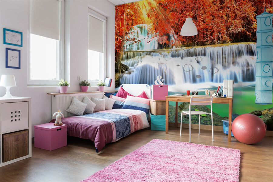 Fototapeta Vodopád v podzimním lese