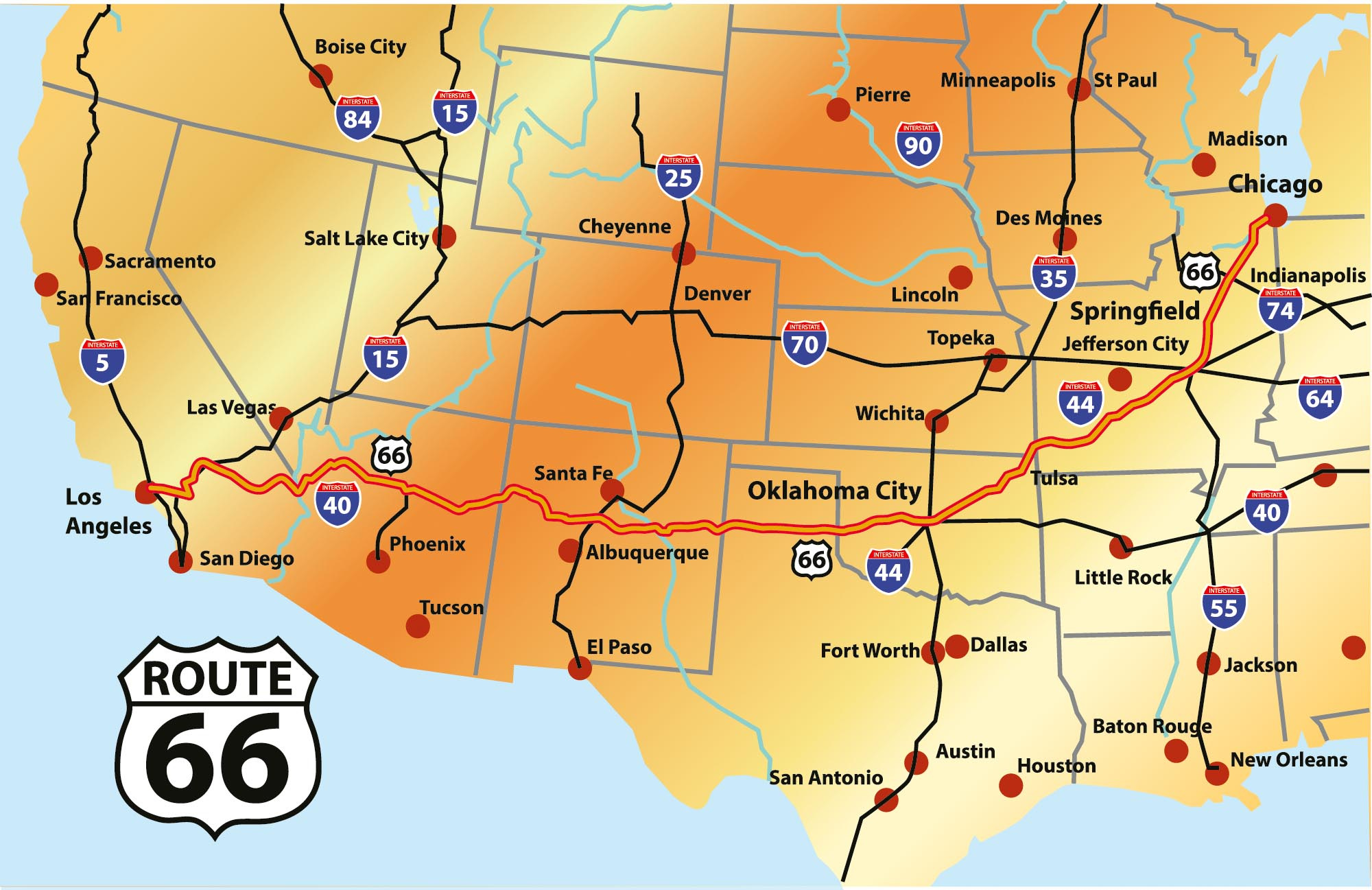 Zlatá mapa trasy 66